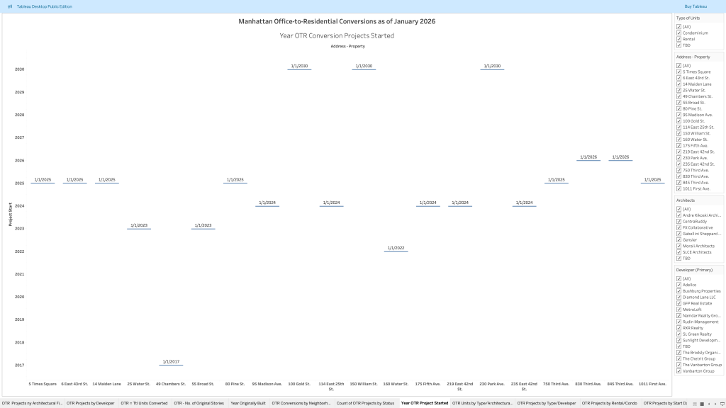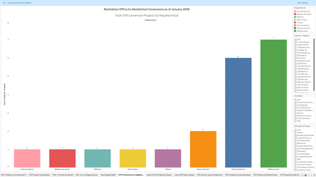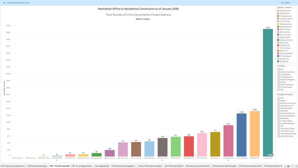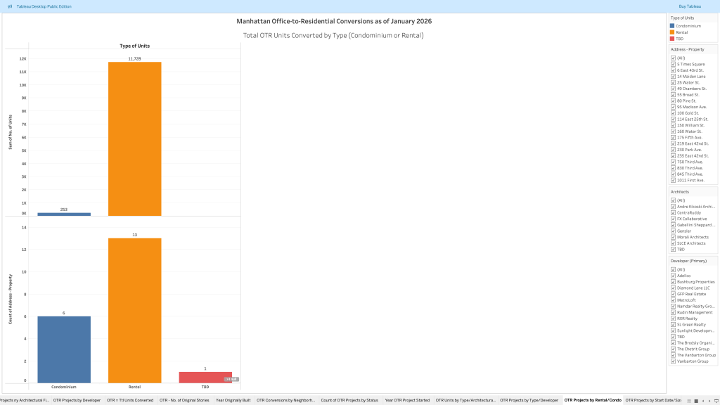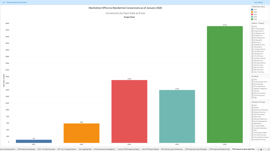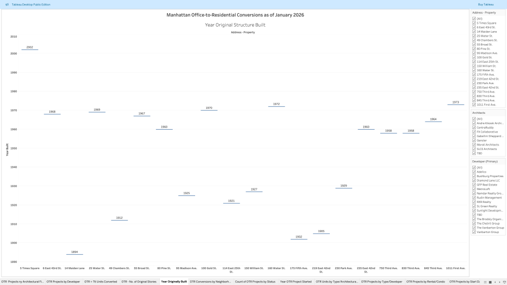 Market Intelligence Analysis of 20 office-to-residential building conversions in Manhattan from 2017-2026. Follow this link to view the original analysis in Tableau: